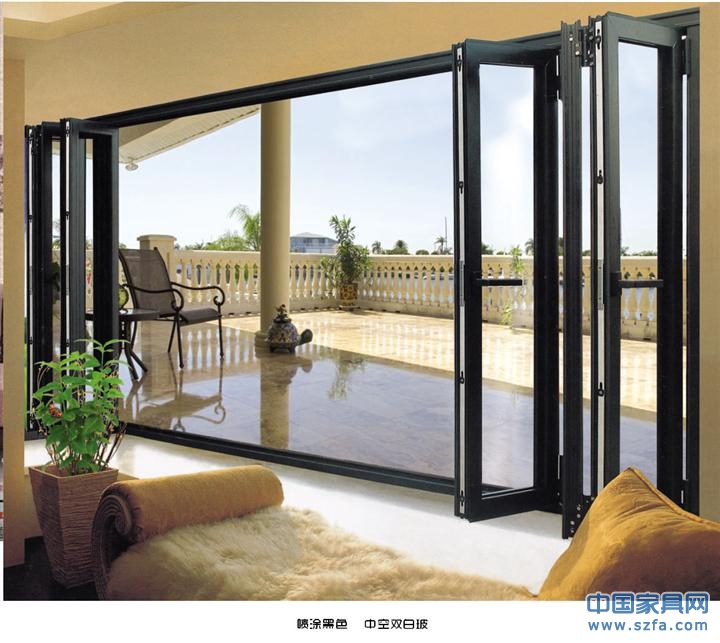 深圳市益民門窗裝飾有限公司生產的鋁合金豪華中空大折疊門系列產品結構多樣,可隨意搭配,能適合所有門框結構。其中3+2型折疊門,5+1大型折疊門比較實用于酒店進出,封陽臺等處。深圳益民鋁合金門窗系列型材表面采用氟碳噴漆工藝。可抗紫外線,抗老化,使用壽命可達30年以上,只要不是人為刮傷,永不掉色。深圳益民鋁合金豪華大折疊門系列產品采用中空雙層鋼化玻璃,有明顯隔音隔熱效果,扇花色樣繁多,鋁花,格條的裝飾使之更加氣質非凡,是你在休閑午后室外的令一道風景線。