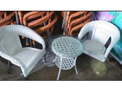 防藤不同于藤制的桌椅.仿藤家具不怕曬,不怕水洗,結實,比真滕桌椅更適合干燥的氣候,不變形,不干裂,而且價格便宜。藤鐵家具更能給人一種透徹、涼爽的質感,和自然爽朗的氣息。