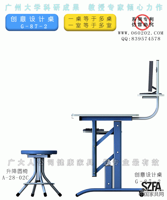 特殊書桌:可站立學習和工作,回復人體脊椎和呼吸的自然狀態,預防肥胖和痔瘡。