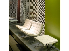設計背景:巴塞羅那椅(Barcelona Chair)是由密斯.凡.德羅(Mies vander Rohe)在1929年為巴塞羅那世博會設計的偉大作品,開創了現代設計先河,并被德國作為禮物送給西班牙國王,這件作品被視為二十世紀最經典的椅子流行至今。眩亮的不銹鋼和柔軟的皮革完美結合在一起,讓空間充滿了時代感。巴塞羅那椅(Barcelona Chair)已經被多家博物館收藏。