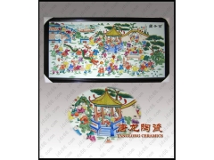 瓷板畫是指在平素瓷板上使用特殊的化工顏料手工繪畫、上釉,再經高溫燒制而成的一種平面陶瓷工藝品。瓷板畫可裝裱、或嵌入屏風中,作觀賞用。瓷板畫最早可追溯到秦漢時期,而真正意義上的“瓷板畫”則出現在明代中期。從清中期開始,瓷板畫的發展走向了興盛。瓷板畫具有瓷板平整光潔之美,便于陶藝家以瓷當紙,隨意揮毫,充分發揮作者的繪畫天才,充分展示瓷畫的審美意境。