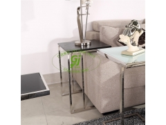 材質(zhì):亮光不銹鋼架+黑色科技木臺面